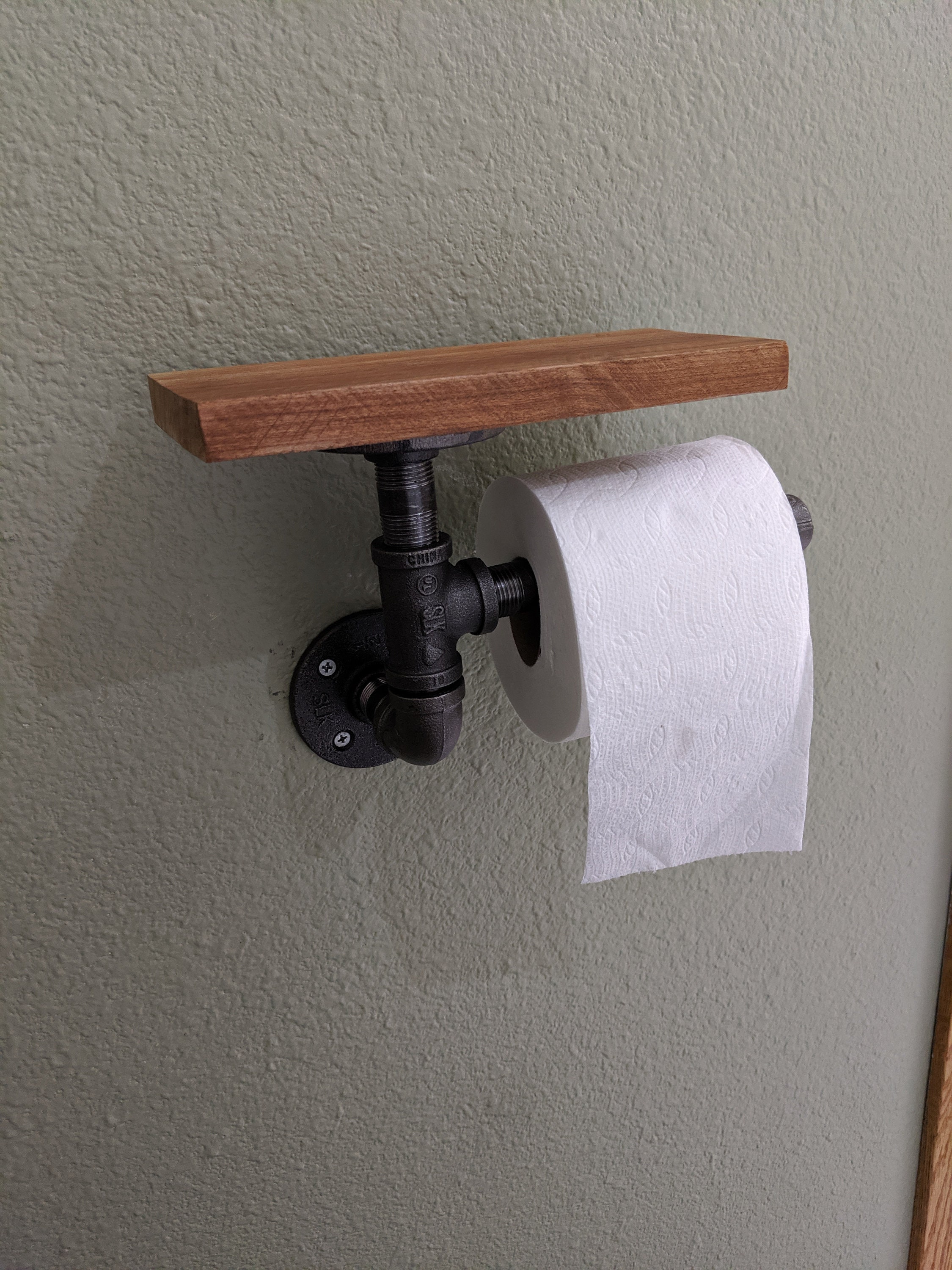 Industrial toilet paper holder/stand made from unfinished iron pipe fittings with a natural gunmetal color. Industrial farmhouse / steampunk double roll toilet paper holder for bathroom decor easy to install, easy to use looks amazing in your bathroom! Toilet paper holders & storage └ bathroom accessories └ bath └ home & garden all categories antiques art automotive baby books & magazines business & industrial cameras & photo cell phones & accessories clothing, shoes & accessories coins & paper money collectibles. The holder is handmade and it will be crafted once an order is placed.